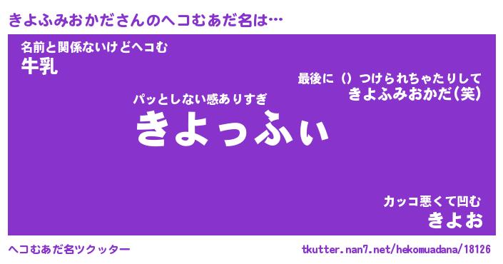 | 男性向けラノベタイトル風あだ名 | 『きよふみおかだの憂鬱』 |