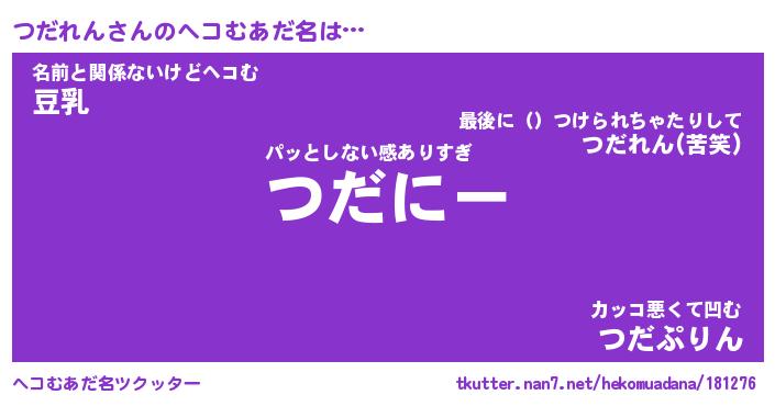 | 意味不明あだ名 | 『ペロリンつだれん』『永久保存つだれん』 |