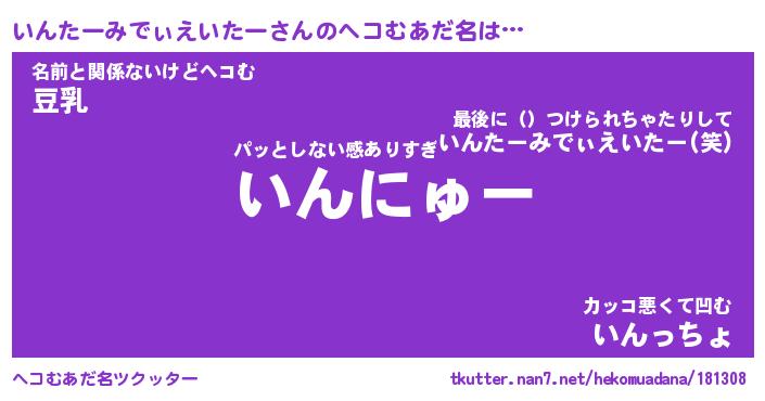| 欧米人風あだ名 | 『マイケルいんたーみでぃえいたー』 |
