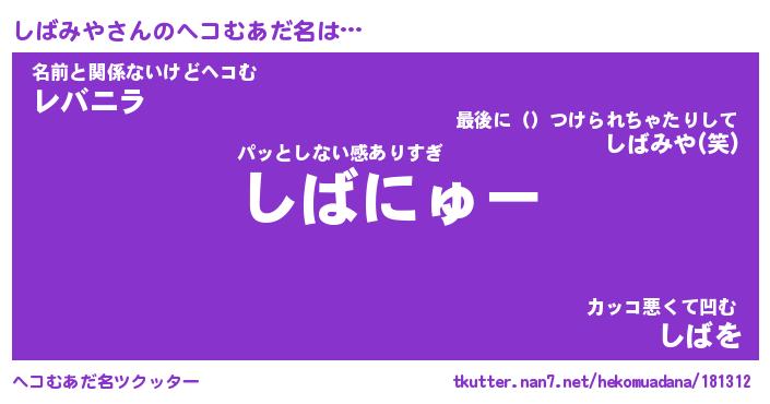 | 意味不明あだ名 | 『ペロリンしばみや』『永久保存しばみや』 |