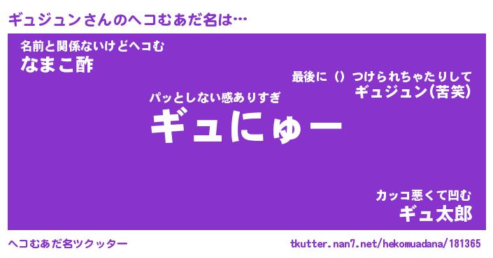 | ヒーロー風カッコイイあだ名 | 『スーパーギュジュン』『銀牙騎士ギュ』 |