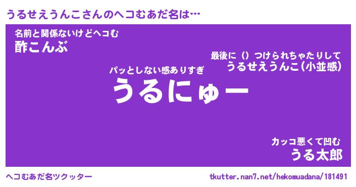 | ピコ太郎風あだ名 | 『ウコ史郎』『ピウ六郎』『ウル二郎』 |