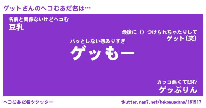 | 男性向けラノベタイトル風あだ名 | 『ゲットの憂鬱』 |