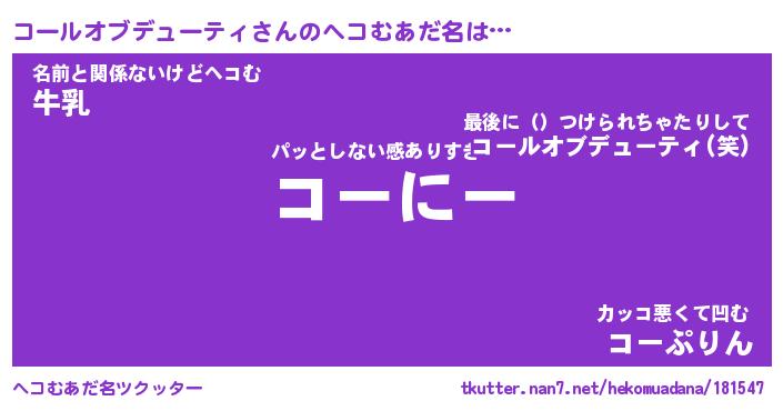 | 意味不明あだ名 | 『ペロリンコールオブデューティ』 |