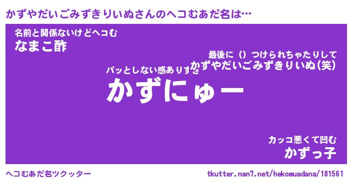 | ヒーロー風カッコイイあだ名 | 『スーパーカズヤダイゴミズキリイヌ』 |