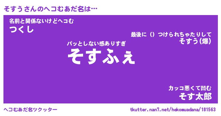 | 意味不明あだ名 | 『ペロリンそすう』『そすうフォーエバー』 |