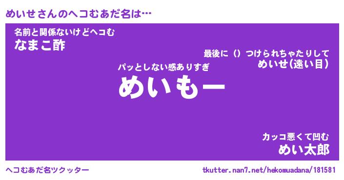 | ポケモン風あだ名 | 『メイチュウ』『メイセダネ』 |