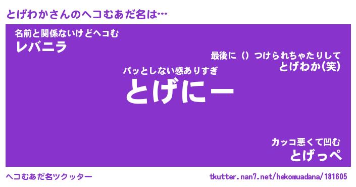 | 意味不明あだ名 | 『ペロリンとげわか』『永久保存とげわか』 |