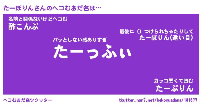 | 恥ずかしいあだ名 | 『プリティーたーぼりん』『たーっちょ』 |