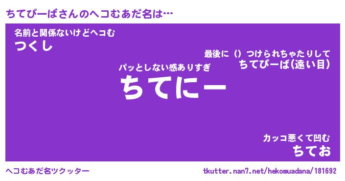 | 男性向けラノベタイトル風あだ名 | 『ちてぴーばの憂鬱』 |