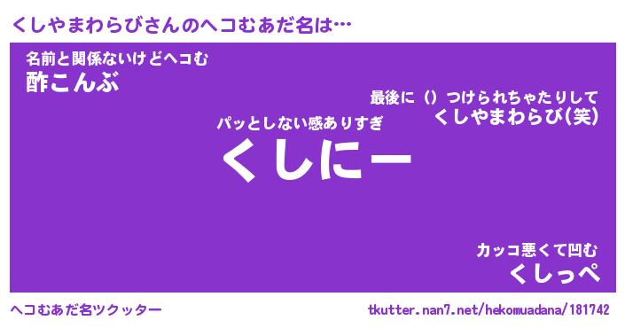 | 男性向けラノベタイトル風あだ名 | 『くしやまわらびの憂鬱』 |