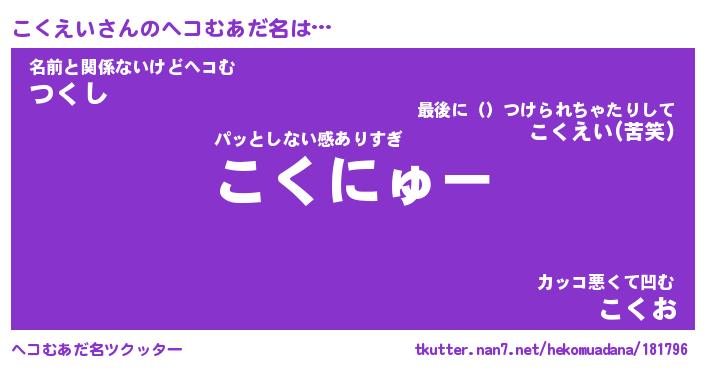 | ファンタジー風あだ名 | 『コクフェル』『エターナルコクエイー』 |