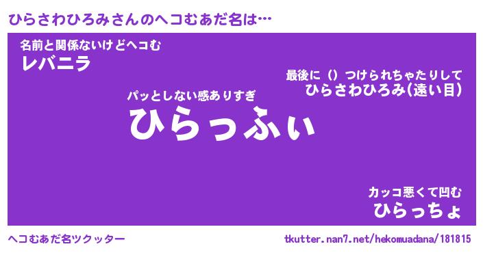 | 伝説のあだ名 | 『封印されしスナイパーひらさわひろみ』 |