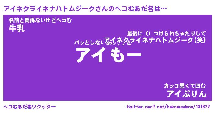 | ツイッター | アイネクライネナハトムジークさんのツイッターID『namakemono_kun』 |