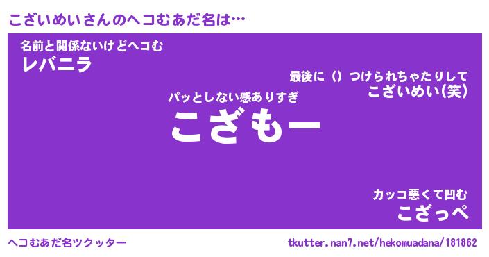 | 恥ずかしいあだ名 | 『プリティーこざいめい』『こざっちょ』 |
