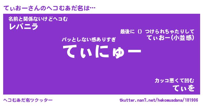 | 意味不明あだ名 | 『ペロリンてぃおー』『永久保存てぃおー』 |