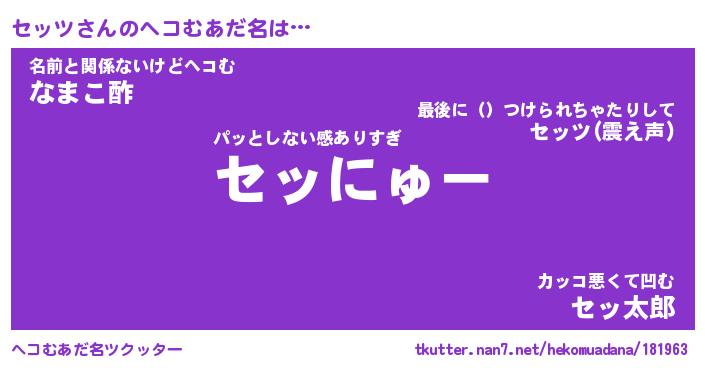 | ポケモン風あだ名 | 『セッチュウ』『セッツダネ』 |