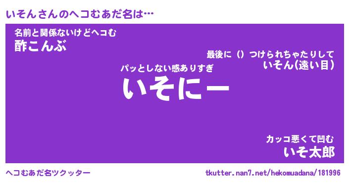 | ポケモン風あだ名 | 『イソチュウ』『イソンダネ』 |