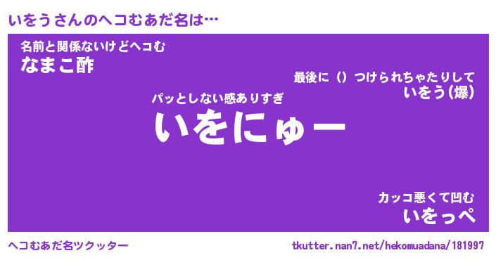 | ヒーロー風カッコイイあだ名 | 『スーパーイヲウ』『ウルトラいをうマン』 |