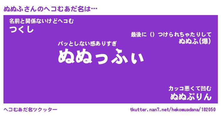 | ポケモン風あだ名 | 『ヌヌチュウ』『ヌヌフダネ』 |