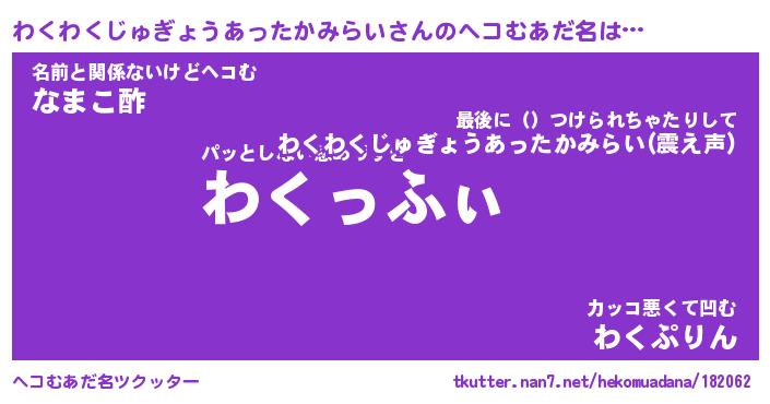 | 2回繰り返すあだ名 | 『わくわく』『わわくく』『いじいじ』 |