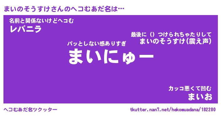 | 欧米人風あだ名 | 『マイケルまいのそうすけ』 |