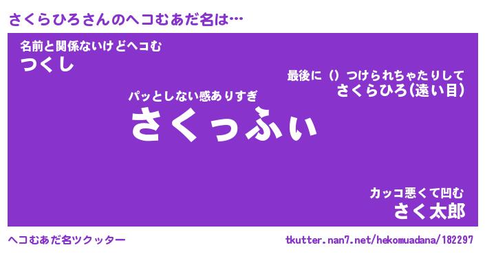 | 恥ずかしいあだ名 | 『プリティーさくらひろ』『さくっちょ』 |