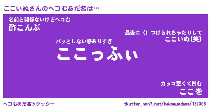 | 意味不明あだ名 | 『ペロリンここいぬ』『永久保存ここいぬ』 |