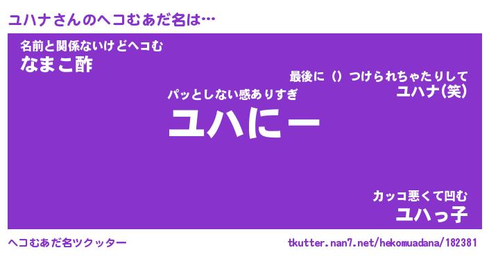 | ポケモン風あだ名 | 『ユハチュウ』『ユハナダネ』 |