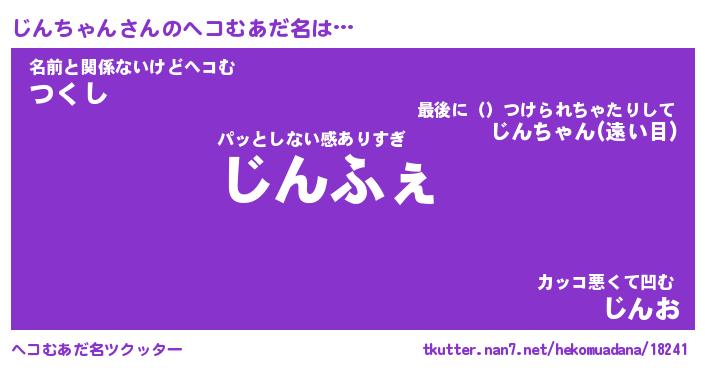 | 2回繰り返すあだ名 | 『じんじん』『じじんん』『ぷくぷく』 |