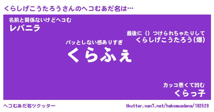 | 男性向けラノベタイトル風あだ名 | 『くらしげこうたろうの憂鬱』 |