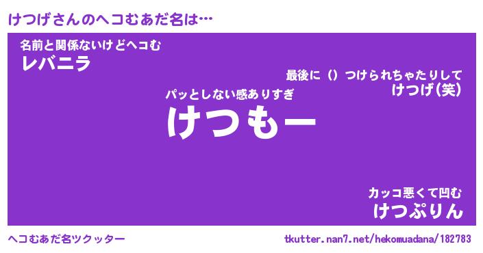 | 意味不明あだ名 | 『ペロリンけつげ』『けつげフォーエバー』 |