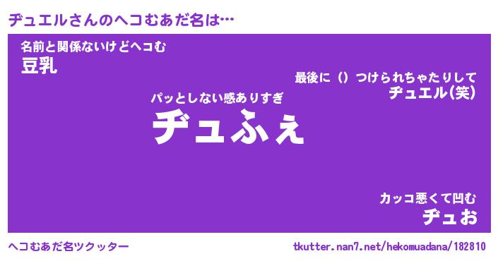 | ファンタジー風あだ名 | 『ヂュフェル』『エターナルヂュエルー』 |