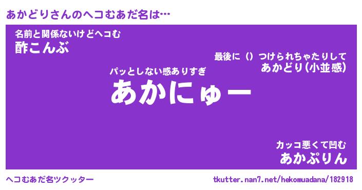 | 意味不明あだ名 | 『ペロリンあかどり』『永久保存あかどり』 |