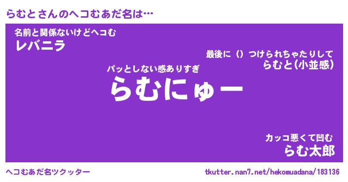 | ポケモン風あだ名 | 『ラムチュウ』『ラムトダネ』 |