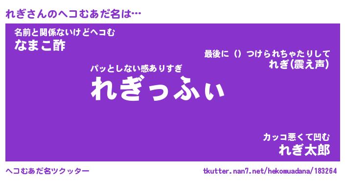 | 意味不明あだ名 | 『ペロリンれぎ』『れぎフォーエバー』 |