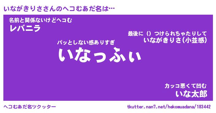 | ヒーロー風カッコイイあだ名 | 『スーパーイナガキリサ』『魔戒騎士イナ』 |