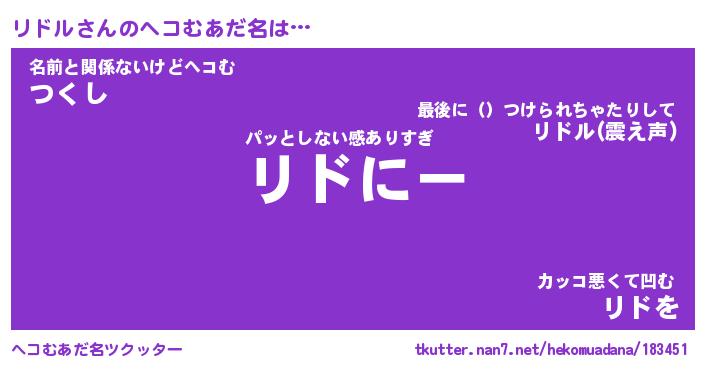 | 意味不明あだ名 | 『ペロリンリドル』『リドルフォーエバー』 |