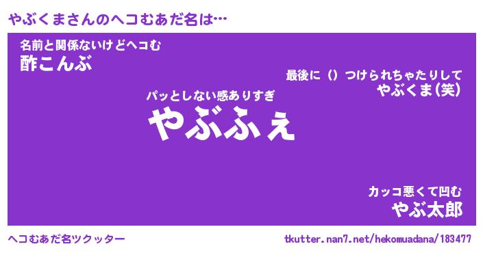 | 2回繰り返すあだ名 | 『やぶやぶ』『ややぶぶ』『くぴくぴ』 |