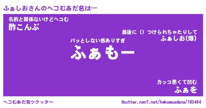 | 意味不明あだ名 | 『ペロリンふぁしお』『永久保存ふぁしお』 |