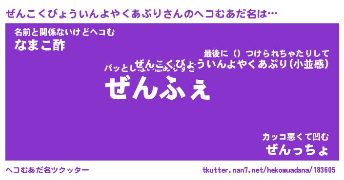 | ポケモン風あだ名 | 『ゼンチュウ』『ゼンコダネ』 |