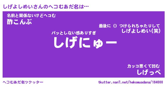 | ヒーロー風カッコイイあだ名 | 『スーパーシゲヨシメイ』『天弓騎士シゲ』 |
