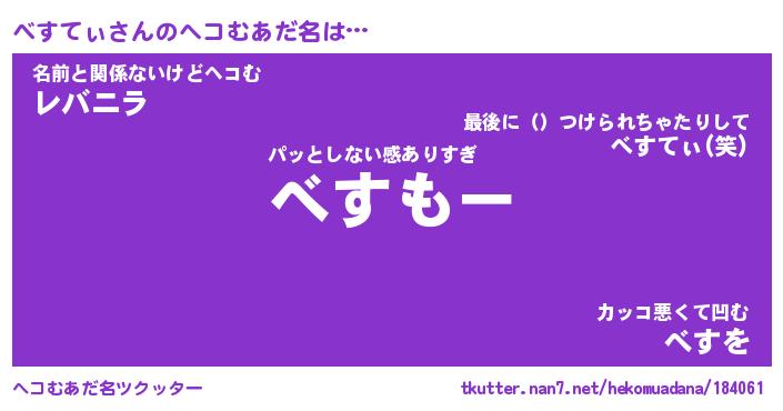 | 意味不明あだ名 | 『ペロリンべすてぃ』『永久保存べすてぃ』 |