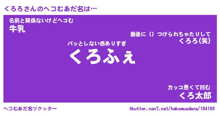 | 男性向けラノベタイトル風あだ名 | 『くろろの憂鬱』 |
