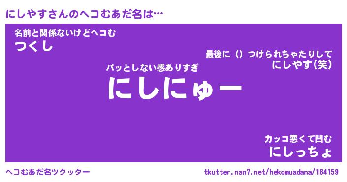 | ポケモン風あだ名 | 『ニシチュウ』『ニシヤダネ』 |