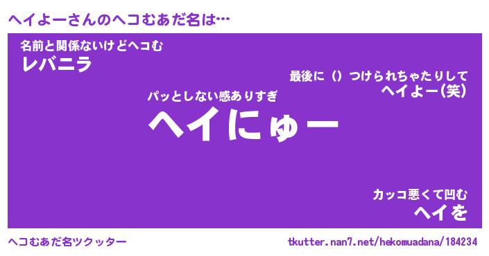 | 意味不明あだ名 | 『ペロリンヘイよー』『永久保存ヘイよー』 |