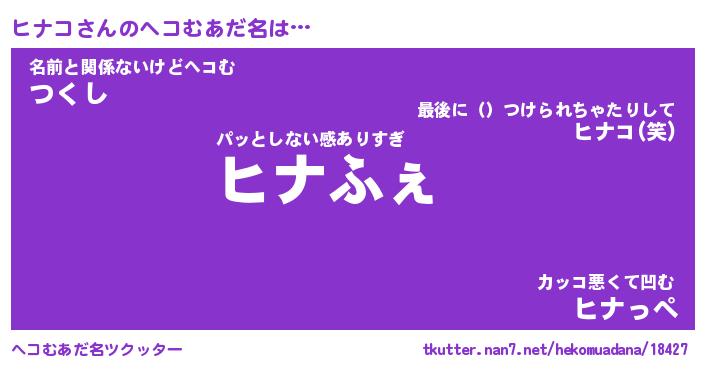 | 意味不明あだ名 | 『ペロリンヒナコ』『ヒナコフォーエバー』 |