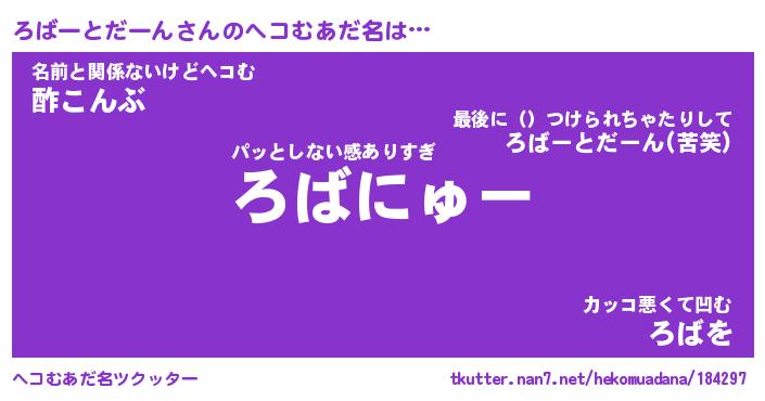 | 意味不明あだ名 | 『ペロリンろばーとだーん』 |