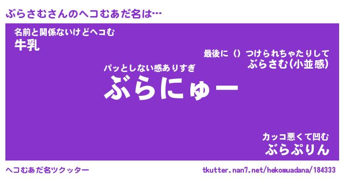 | 意味不明あだ名 | 『ペロリンぶらさむ』『永久保存ぶらさむ』 |