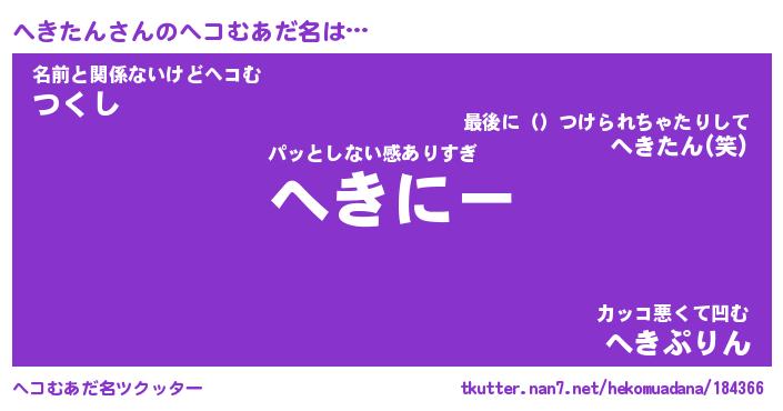 | ピコ太郎風あだ名 | 『ヘコ次郎』『ピヘ史郎』『ヘキ八郎』 |